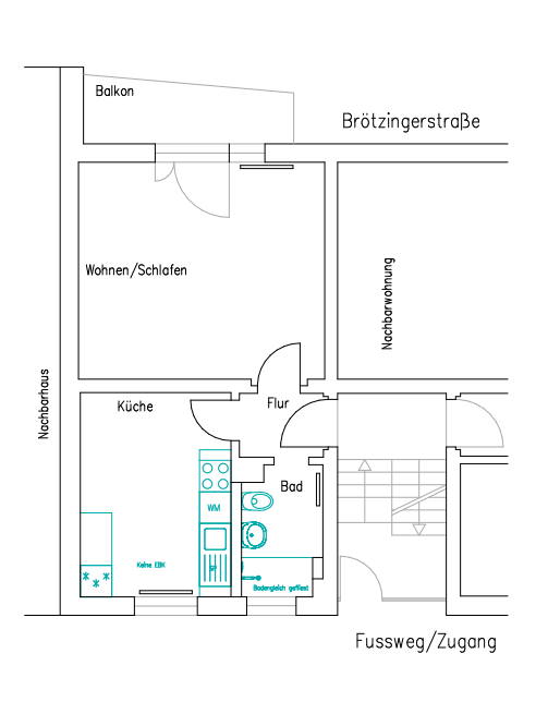 Die zentrale Lage ermöglicht eine gute Erreichbarkeit des Pforzheimer Zentrums, welches nur wenige Kilometer entfernt liegt. Die Wohnung kombiniert somit die Ruhe einer naturnahen Umgebung mit der Nähe zu städtischen Annehmlichkeiten.